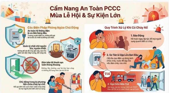 Các ban quản lý chợ, nơi tổ chức lễ hội cần tăng cường tuyên truyền nội quy PCCC; kiểm soát nguồn lửa, nguồn nhiệt tại khu vực kinh doanh ẩm thực, bãi xe; bảo đảm giao thông thông suốt cho xe chữa cháy; không để lấn chiếm hành lang an toàn PCCC.