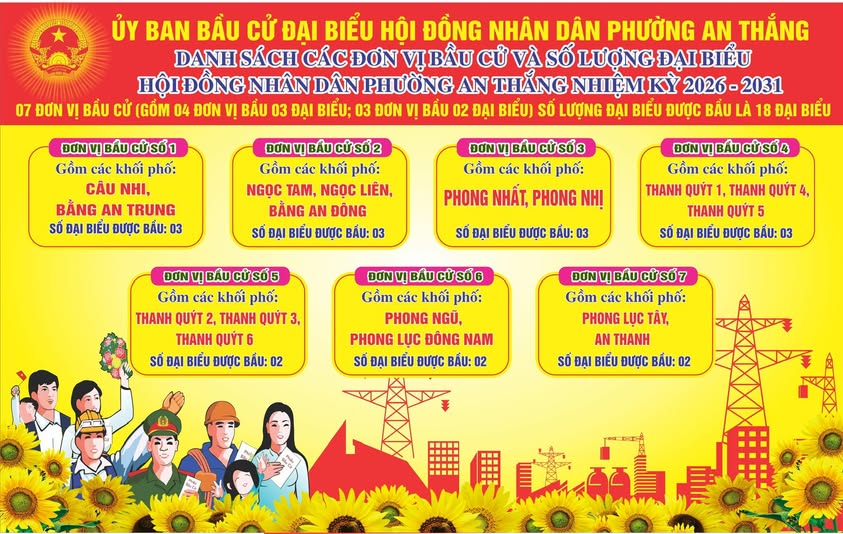 Danh sách các đơn vị bầu cử và số lượng đại biểu Hội đồng nhân dân phường An Thắng nhiệm kỳ 2026-2031.