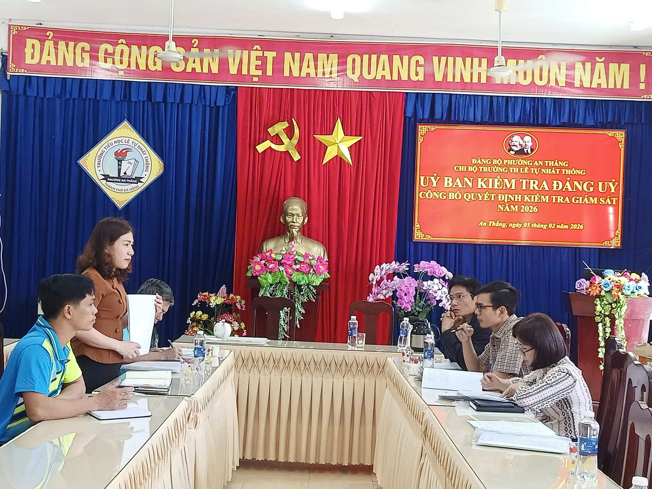 Thực hiện Chương trình, kế hoạch kiểm tra, giám sát năm 2026 của Ủy ban Kiểm tra Đảng ủy phường An Thắng, chiều ngày 05/02/2026, Ủy ban Kiểm tra Đảng ủy phường tổ chức Hội nghị công bố Quyết định giám sát chuyên đề đối với Chi bộ và đồng chí Bí thư Chi bộ cơ sở Trường Tiểu học Lê Tự Nhất Thống và Trường Tiểu học Phan Bôi.