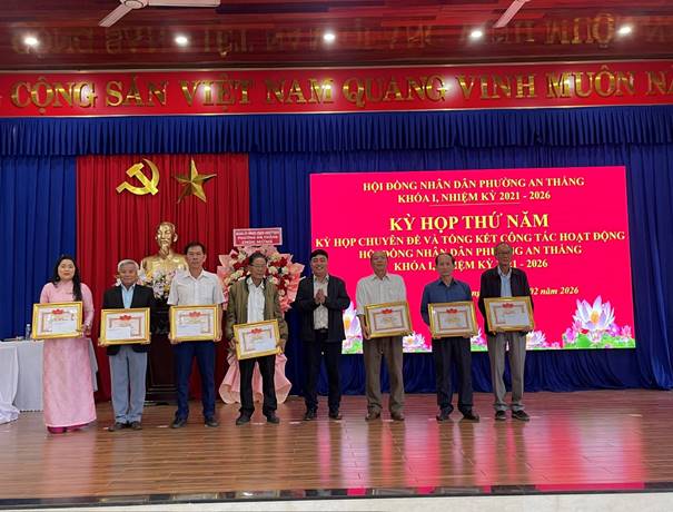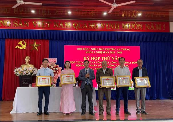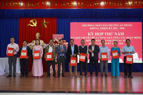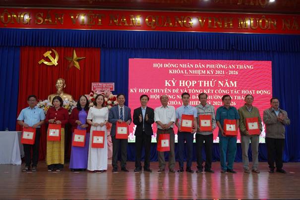 Dịp này, UBND phường An Thắng đã tặng giấy khen cho 5 tập thể và 15 cá nhân có thành tích tiêu biểu trong hoạt động của HĐND phường khóa I, nhiệm kỳ 2021–2026. HĐND phường cũng trao quà tri ân các đại biểu và nguyên đại biểu HĐND phường nhiệm kỳ 2021–2026, ghi nhận những đóng góp tích cực trong suốt chặng đường hoạt động của nhiệm kỳ.