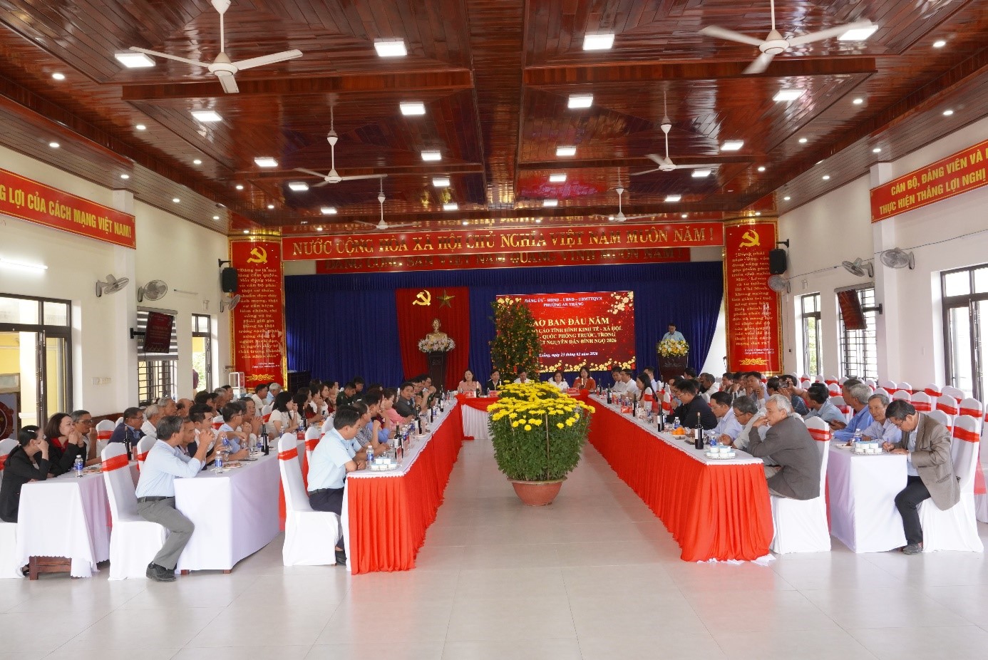 Tham dự hội nghị có ông Nguyễn Xuân Hà – Bí thư Đảng ủy, Chủ tịch HĐND phường; bà Đoàn Thị Minh Nguyệt – Phó Bí thư Thường trực Đảng ủy; ông Đặng Công Nhiên – Phó Bí thư Đảng ủy, Chủ tịch UBND phường; bà Trần Thị Hà – UV BTV, Chủ tịch Ủy ban MTTQ Việt Nam phường; cùng các đồng chí Thường trực Đảng ủy, Thường trực HĐND, Ban Thường vụ, Ban Chấp hành Đảng bộ; lãnh đạo các ban xây dựng Đảng, Ủy ban Kiểm tra, các Ban HĐND; Thường trực Ủy ban MTTQ Việt Nam phường; đại diện các hội, đoàn thể; lãnh đạo các cơ quan, đơn vị chuyên môn; Ban Giám hiệu các trường học, Trạm Y tế, Giám đốc các HTX; Bí thư chi bộ, Trưởng khối và Trưởng Ban Công tác Mặt trận 17 khối phố.