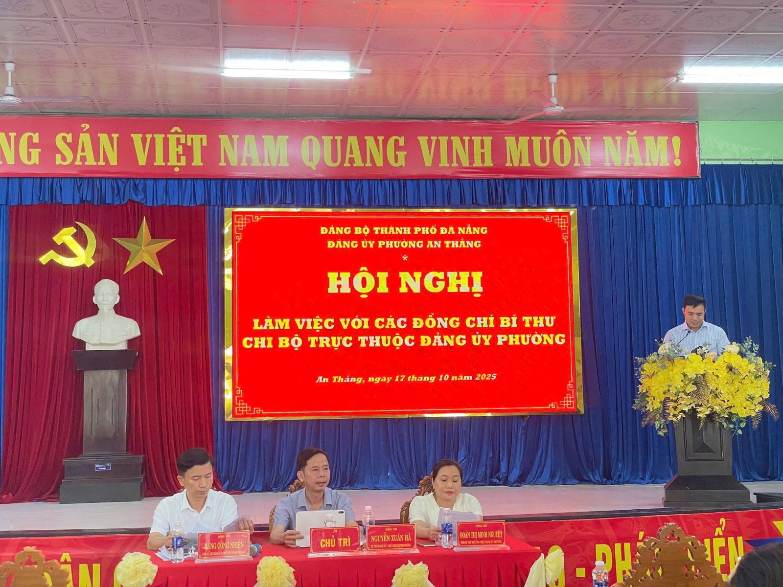 Chiều ngày 17/10/2025, Đảng ủy phường An Thắng tổ chức Hội nghị thông tin nhanh kết quả Hội nghị lần thứ XIII Ban Chấp hành Trung ương Đảng khóa XIII, quán triệt, học tập Nghị quyết Đại hội Đảng bộ thành phố Đà Nẵng lần thứ I, nhiệm kỳ 2025–2030 và làm việc với các đồng chí Bí thư chi bộ trực thuộc.