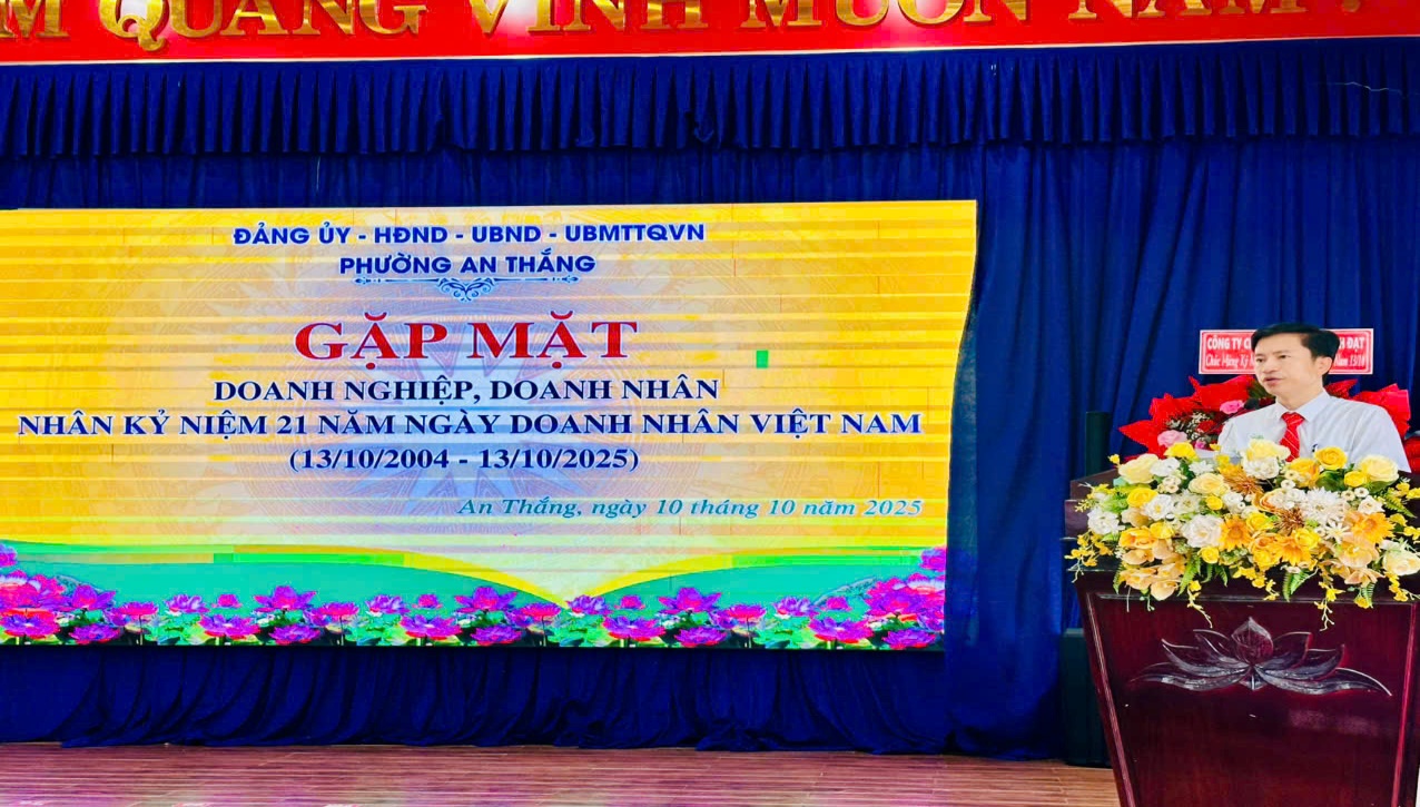Ngày 10 tháng 10 năm 2025, phường An Thắng đã long trọng tổ chức buổi Gặp mặt các doanh nghiệp và doanh nhân trên địa bàn phường, nhân Kỷ niệm 21 năm Ngày Doanh nhân Việt Nam (13/10/2004 -13/10/2025). Sự kiện này nhằm nhấn mạnh vai trò và tầm quan trọng của cộng đồng doanh nghiệp, doanh nhân trong sự nghiệp phát triển kinh tế - xã hội của phường An Thắng.
