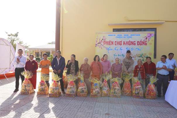 Phiên chợ được bố trí 10 gian hàng 0 đồng, cung cấp nhiều mặt hàng thiết yếu phục vụ nhu cầu ngày Tết như lương thực, thực phẩm, nhu yếu phẩm sinh hoạt… Qua đó hỗ trợ trực tiếp cho 150 hộ gia đình có hoàn cảnh khó khăn trên địa bàn phường. Mỗi hộ được nhận 01 phiếu đi chợ, tự tay lựa chọn các mặt hàng cần thiết với giá trị 0 đồng.