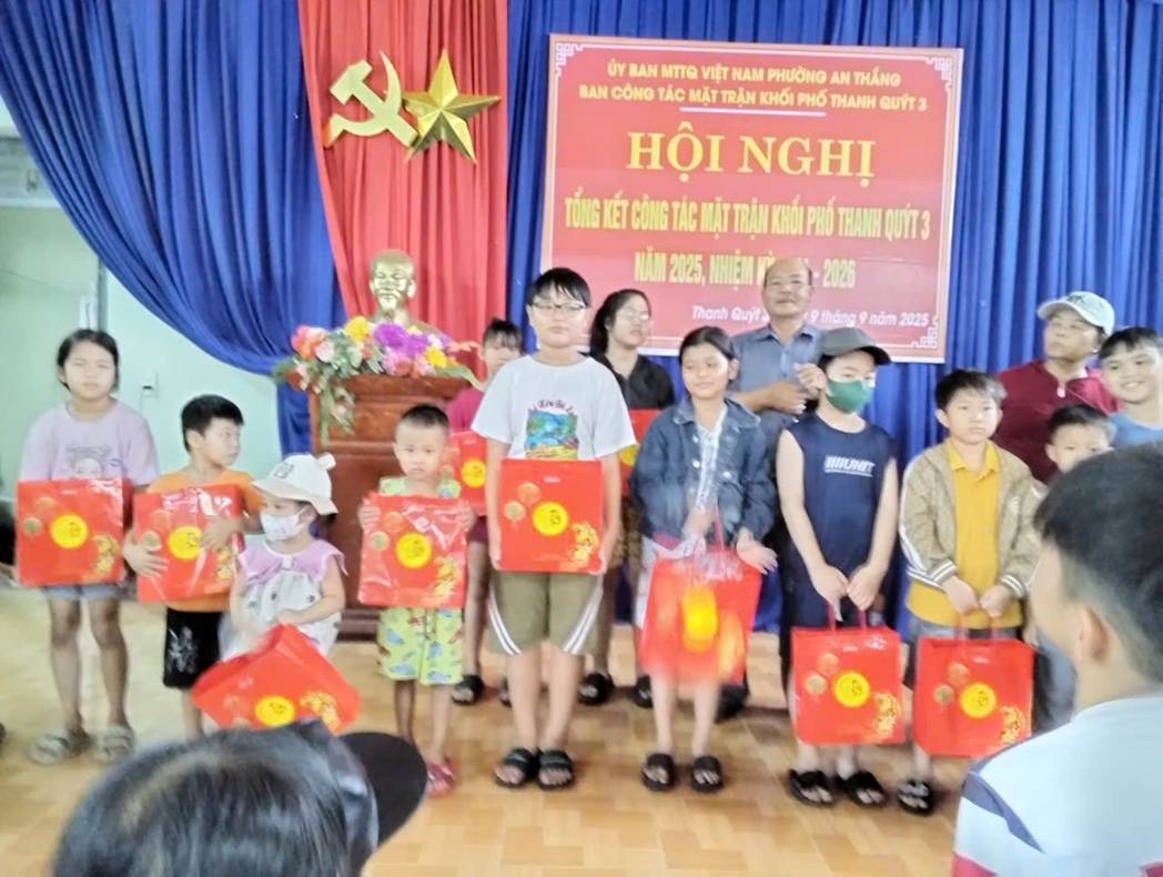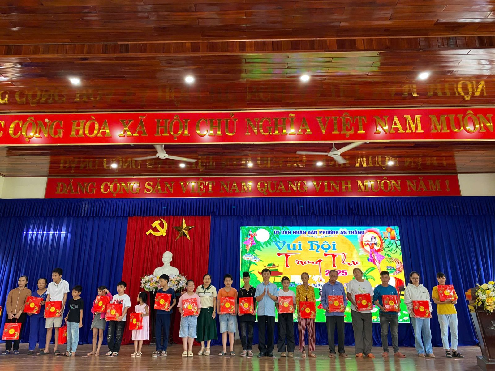 Sáng ngày 05/10/2025 (nhằm ngày 14 tháng 8 Âm lịch), UBND phường đã tổ chức Chương trình “Hội lân và trao quà trung thu cho trẻ em”, với sự tham gia của lãnh đạo Đảng uỷ, HĐND, UBND, UBMTTQVN phường An Thắng và các mạnh thường quân; đã trao tặng 1.000 phần quà Trung thu, cho các em thiếu nhi khuyết tật, các em có hoàn cảnh khó khăn, học sinh nghèo, tổng kinh phí 250.000.000 đồng và hỗ trợ kinh phí tổ chức Hội lân trung thu. Tại Chương trình, lãnh đạo phường An Thắng đã trao trực tiếp 118 phần quà cho trẻ em khuyết tật, đồng thời gửi 857 suất quà về 17 khối phố tổ chức trao cho trẻ em có hoàn cảnh khó khăn. Những phần quà tuy giá trị vật chất không lớn, nhưng lại chan chứa tình cảm, sự quan tâm, trách nhiệm và yêu thương mà cả cộng đồng gửi tới các em nhỏ. Ngoài ra, UBND phường hỗ trợ hơn 39 triệu đồng từ nguồn ngân sách phường cho 17 khối phố tổ chức phát quà trung thu cho các em.