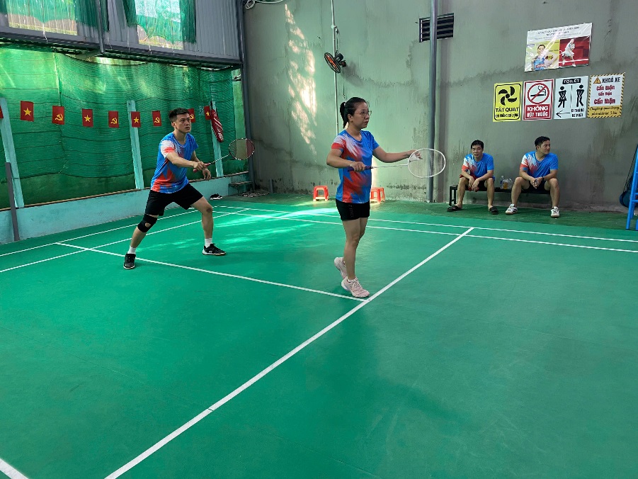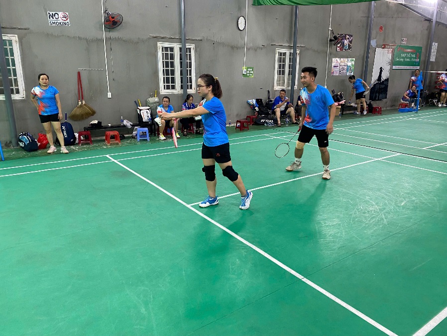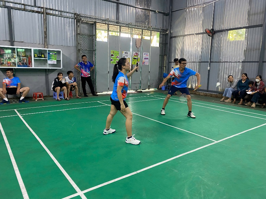 Các vận động viên thi đấu sôi nổi trong Giải cầu lông giao lưu chào mừng Ngày truyền thống.