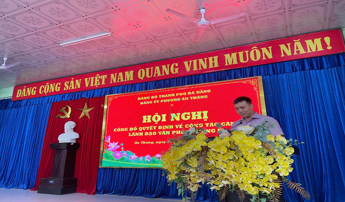 Tại hội nghị, đồng chí Võ Minh Nam – UVBTV, Trưởng ban Xây dựng đảng Đảng ủy phường thông qua Quyết định số 113-QĐ/ĐU ngày 25/9/2025 của Ban Thường vụ Đảng ủy phường An Thắng về việc tiếp nhận và bổ nhiệm đồng chí Nguyễn Trung Nguyên, Phó Giám đốc Trung tâm phục vụ Hành chính công phường, giữ chức vụ Phó Chánh Văn phòng Đảng ủy phường An Thắng kể từ ngày 01/10/2025.
