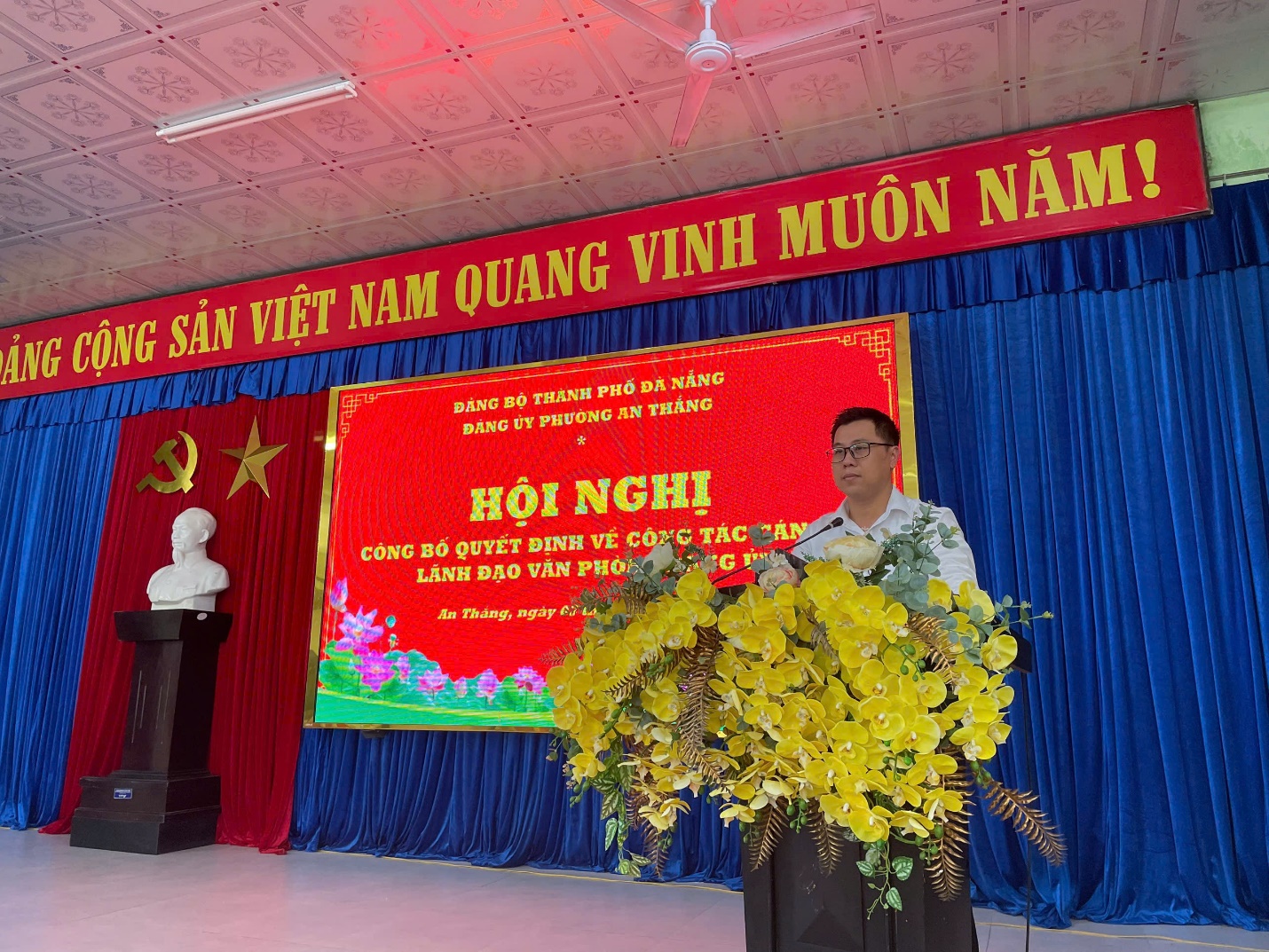 Phát biểu nhận nhiệm vụ, đồng chí Nguyễn Trung Nguyên bày tỏ sự xúc động và trân trọng cảm ơn Ban Thường vụ Đảng ủy phường An Thắng đã tin tưởng giao nhiệm vụ mới. Đồng chí khẳng định đây là niềm vinh dự đồng thời cũng là trách nhiệm lớn lao, đồng chí sẽ luôn giữ vững phẩm chất chính trị, không ngừng học hỏi, cầu thị, chủ động nắm bắt công việc, phát huy tinh thần trách nhiệm, phối hợp chặt chẽ với các bộ phận chuyên môn, tham mưu hiệu quả cho Đảng ủy, Ban Thường vụ phường trong công tác lãnh đạo, chỉ đạo và tổ chức thực hiện các nhiệm vụ chính trị tại địa phương.
